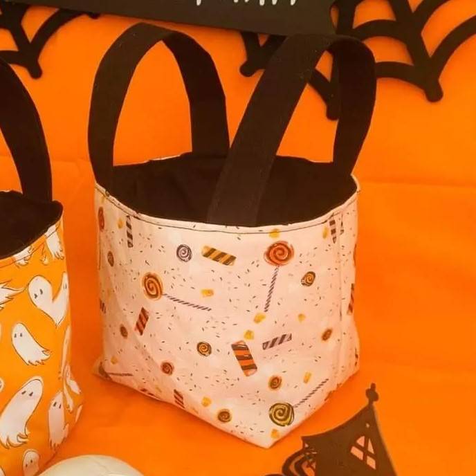 Pour cela quoi de mieux qu’un jolie petit panier aux imprimés d’Halloween pour mettre leur bonbons.