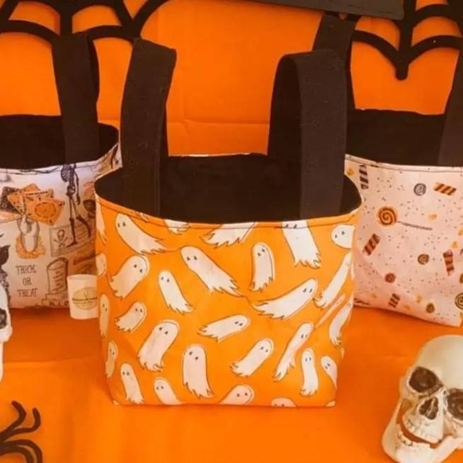 Pour cela quoi de mieux qu’un jolie petit panier aux imprimés d’Halloween pour mettre leur bonbons.